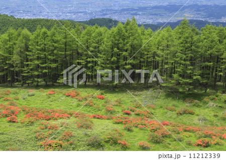 レンゲツツジ咲く美ヶ原高原から望む松本市街