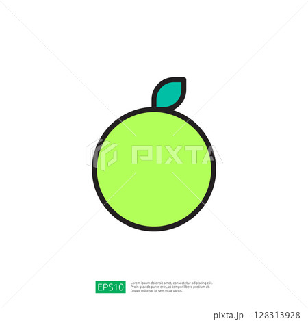 Minimalist Icon of a Bright Green Citrus Fruit with a Leaf Symbolizing Freshness and Agriculture