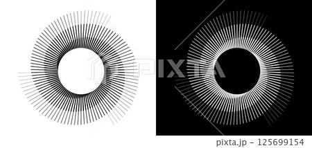 Spiral with lines in circle. Abstract geometric art line background, logo, icon, design element. A black figure on a white background and an equally white figure on the black side.