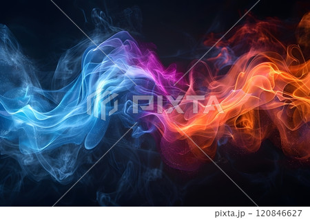 Dynamic Abstract Waves of Blue and Orange Smoke on Dark Background for Creative Design Generative AI