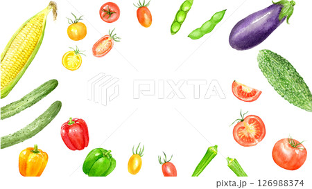 水彩画。水彩タッチのカラフルな春の花びらフレーム。色鮮やかな花のベクターイラスト。
