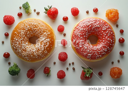 3D Render of Pink Frosted Donut with Sprinkles on Pastel Blue Background