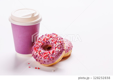 A delightful cupcake with colorful sprinkles, delicious frosting, and a heart-shaped waffle.