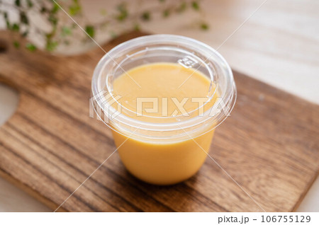 カップに入ったプリンと卵のセット 卵料理の手描き水彩イラスト素材