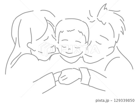 子どもを抱きしめる両親 線画
