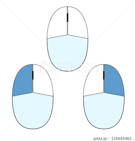 シンプルなマウスのイラスト素材 ブルー水色デザイン 白黒線 左右クリック png背景透明