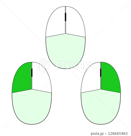 シンプルなマウスのイラスト素材 さわやかグリーンのデザイン白黒線 左右クリック png背景透明