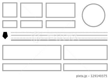 シンプル見出しフレーム枠タイトルのセット 白黒色 四角 横長 線と塗り 透過png ベクター