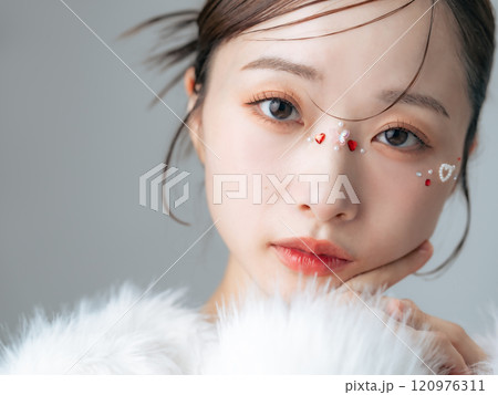 ストーンメイクをした女性 スキンケア コスメ
