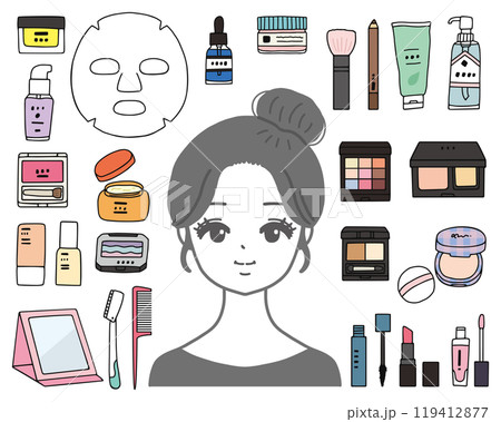 メイク道具 おしゃれ セット 線なし イラスト