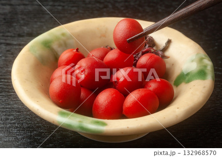小梅 カリカリ梅 小梅の塩漬け 小鉢に盛り付けた小梅の塩漬け