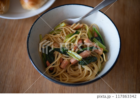 小松菜とベーコンの和風スパゲティ