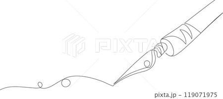 continuous line drawing of a metal quill, symbolizing literature, writing, poetry, and literary contests.
