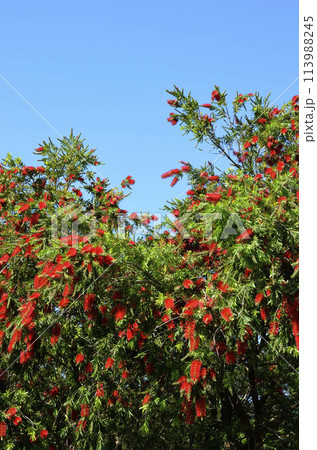 ブラシのような赤いユニークな花が咲く木カリステモン