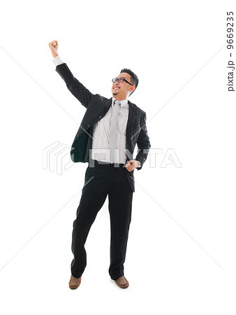 cheerful businessman dancing in success over a white background