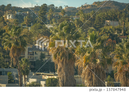 California Luxury Living with Palm Trees and Houses on Hills with copy space