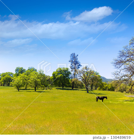 Cows cattle grazing in California meadows