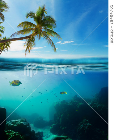 Tropical sea underwater fishes on coral reef. Aquarium oceanarium wildlife colorful marine panorama landscape nature snorkeling diving