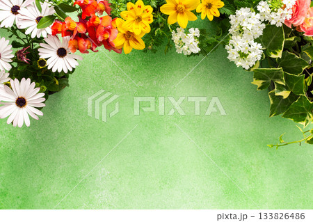 Vibrant spring flowers in various colors adorn a balcony, creating a joyful atmosphere. Seasonal blooms bring life and beauty to the outdoor space, inviting relaxation and enjoyment, banner