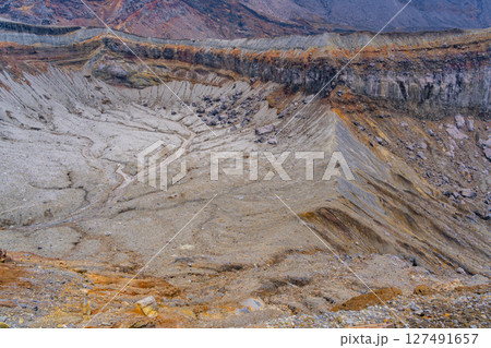 (熊本県)阿蘇山 アグルチネート地形が見られる中岳火口壁