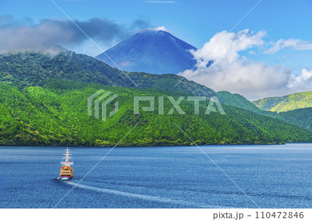 夏の芦ノ湖 富士山に向かって湖を進む海賊船【神奈川県・箱根町】