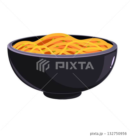 Boiled long spaghetti watercolor illustration on isolated background. Cooked Italian pasta, Asian noodles, traditional Chinese ramen for menu design, food blog, cookbook, web design.