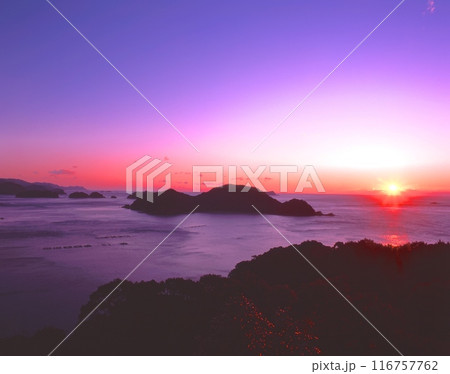 紀伊の松島、初日の出と熊野灘(高塚公園展望台より眺望) 三重県北牟婁郡紀北町紀伊長島区