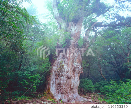 「世界自然遺産」屋久島、縄文杉と早朝の朝霧/国指定特別天然記念物/鹿児島県熊毛郡屋久町