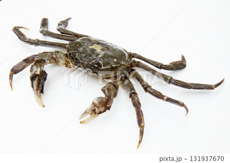 上海蟹と同族で脂がのったこの時期美味しい。生きたモクズガニの写真