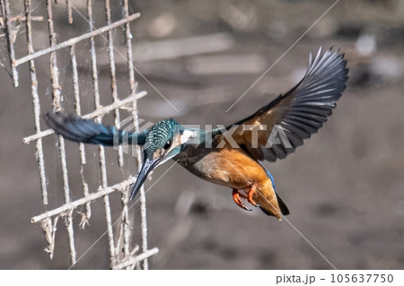 飛翔するカワセミ