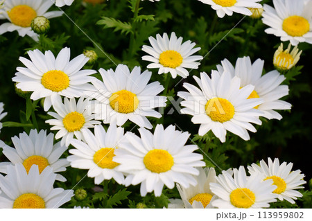 可愛い白い色のノースポールギクの群生【カンシロギク】
