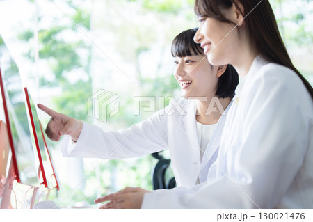 パソコンをする白衣の女性
