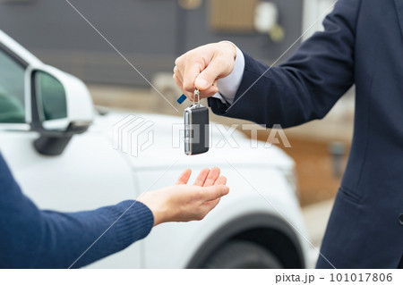 自動車のスマートキーを手渡す男性 レンタカー 納車