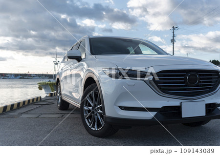 白いSUVタイプの乗用車