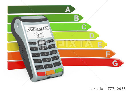 3d contactless payment terminal with credit card, modern pos system with wifi symbol and digital interface