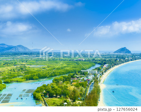 タイ・プラチュワップキーリーカン マングローブ林と青い海 / Prachuap Khiri Khan