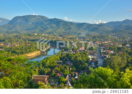 View of Luang Prabang and Nam Khan river in Laos