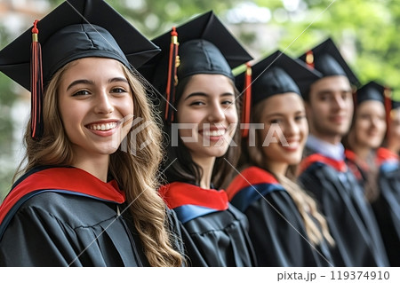 Cheerful graduates celebrating the end of an era and the beginning of a promising future by tossing their graduation caps into the air