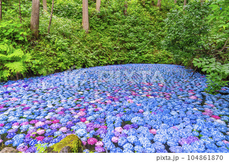 みちのくあじさい園のあじさい池 岩手県一関市