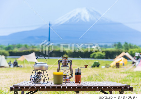 「静岡県」キャンプ場で早朝に富士山を眺める