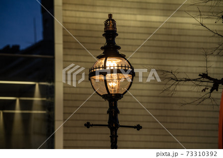 日本の横浜都市景観 横浜・馬車道。関内ホール前にある丸い形のガス灯