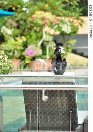 プールサイドの鳥