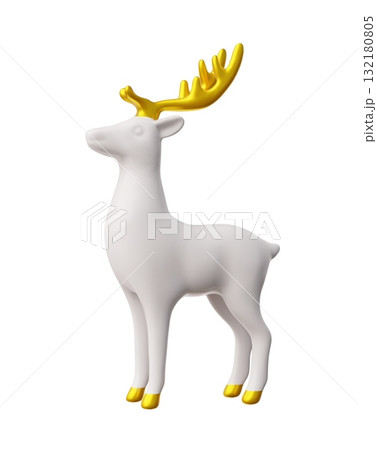 White reindeer with golden horn and hooves 3D vector illustration, Merry Christmas and Happy New year holiday decoration