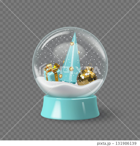 クリスマスのスノードームのイラスト。ツリーとプレゼント(ベクター・切り抜き)