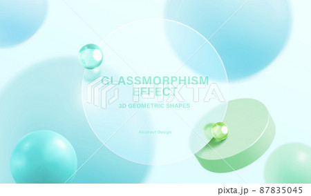 3D glass shapes. Abstract geometric elements. Squares and circles. Crystal ball objects. Round disc or sphere float. Flying cloth. Glossy gradient figures set. Vector realistic design