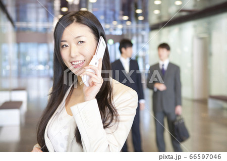 携帯電話で電話するOL