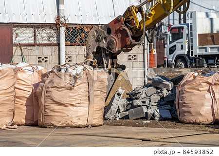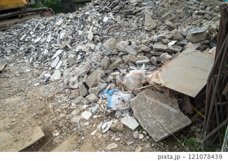 解体現場 取り壊した瓦礫の廃棄物