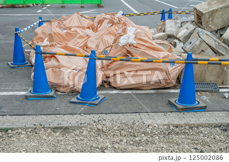 道路工事で撤去したコンガラとフレコンバッグ