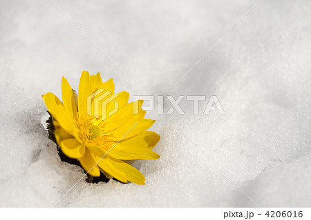 【花素材】雪から顔をのぞかせる福寿草【長野県】