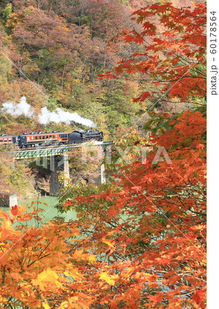 磐越西線「山間部の紅葉風景の中を行くSL」